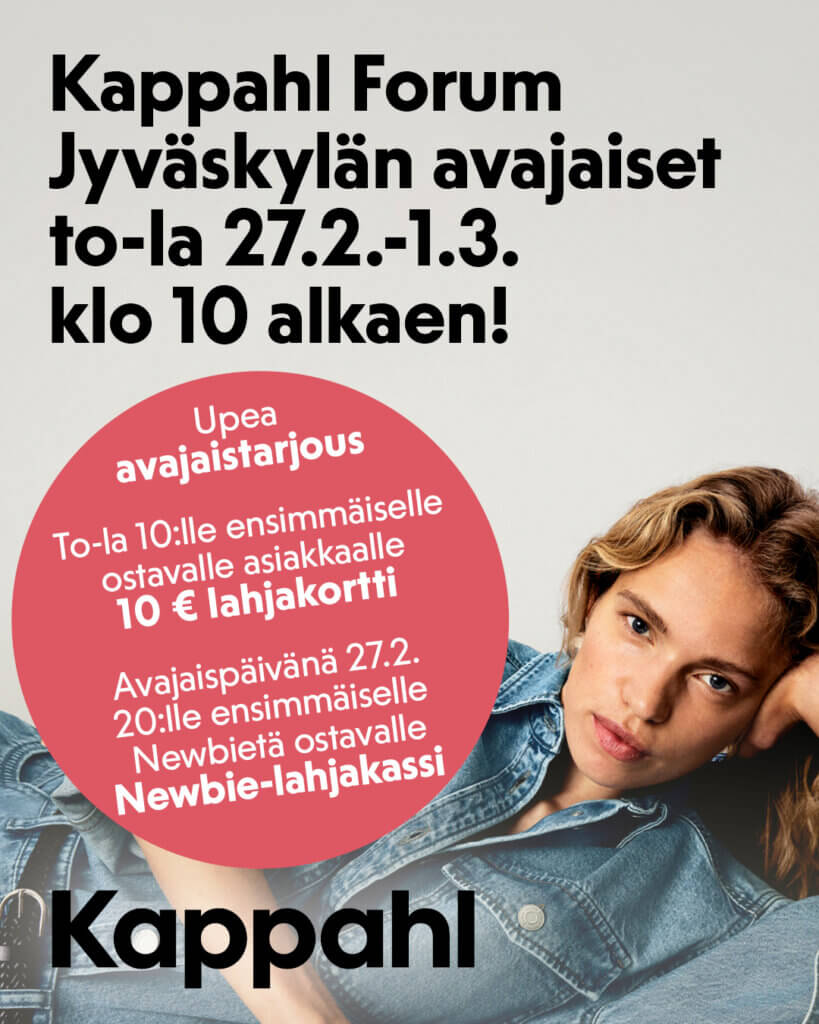 Muotiketju Kappahl avaa uuden myymälän Forumin 3. kerrokseen torstaina 27. helmikuuta. Kauppakeskus Forumin myymälä on Kappahlin ainoa liike Jyväskylän keskustan alueella, tarjoten laajan valikoiman ajattomia ja trendikkäitä suosikkivaatteita naisille, miehille ja lapsille.